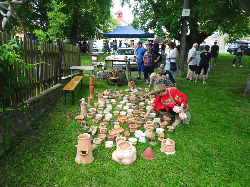 Jarmark byl také věnován všem hrnčířům a keramikům, kteří se věnovali této výrobě. Paní Jitka Vlčková zpracovala historii kožlanských hrnčířů. Na panelech jsme se s ní seznámili a také rodinnou historií posledního kožlanského hrnčíře pana Roberta Hoffmana. Malá výstava kožlanských hrnčířských a keramických výrobků ukázala, co se během jednoho století zde vyrábělo. Děkujeme všem, kteří ochotně poskytli na výstavu tiskové a fotografické materiály a zapůjčili výrobky.