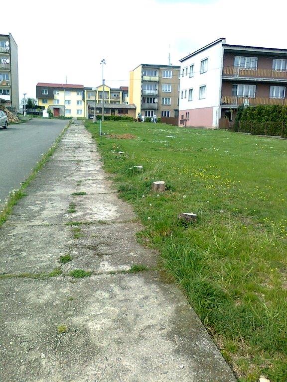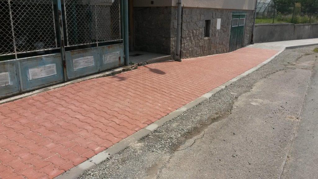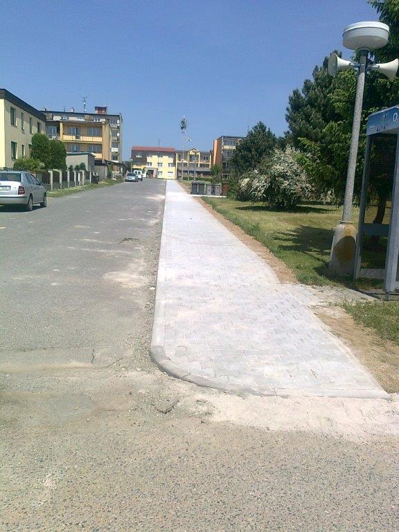 Oprava chodníku v ulici Na Výfuku, Kožlany je již dokončena (viz. nové foto)