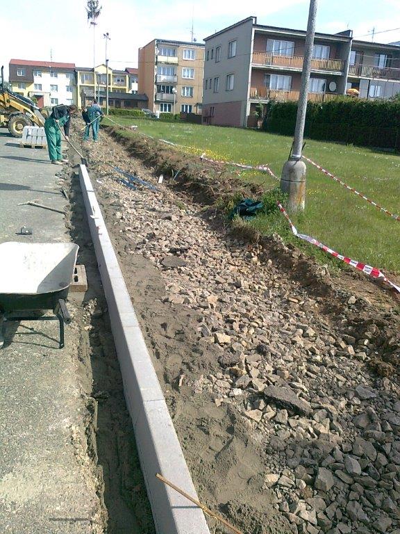 Stavební práce v Kralovické ulici pokračují pokládáním bestu.