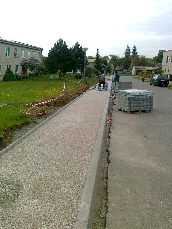 Kralovická ulice byla osazena obrubníky.
