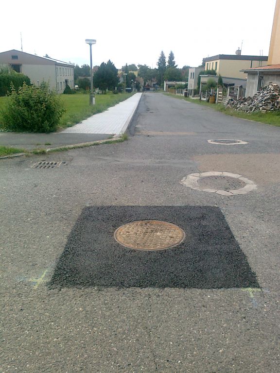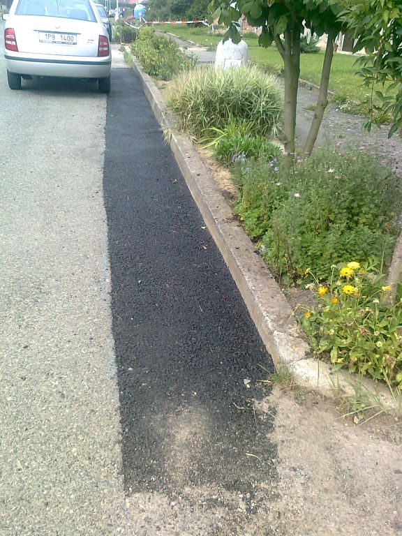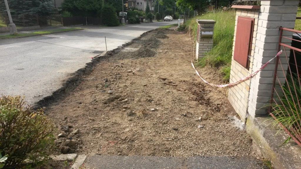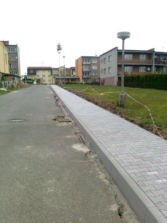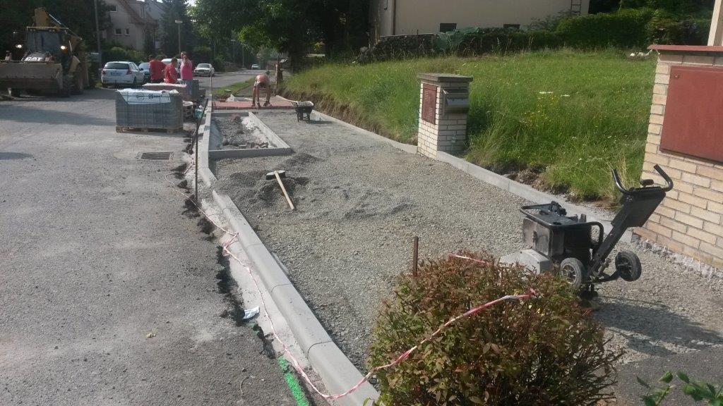 Opravy chodníků a komunikací v Kožlanech v srpnu 2014.