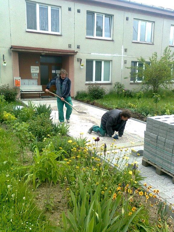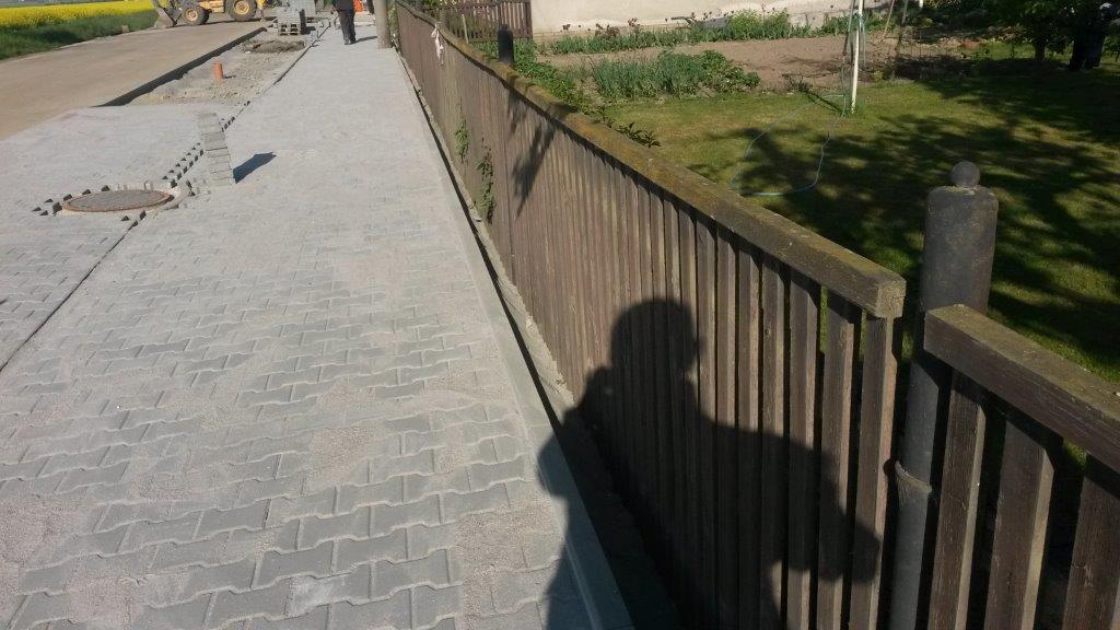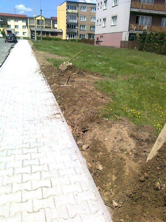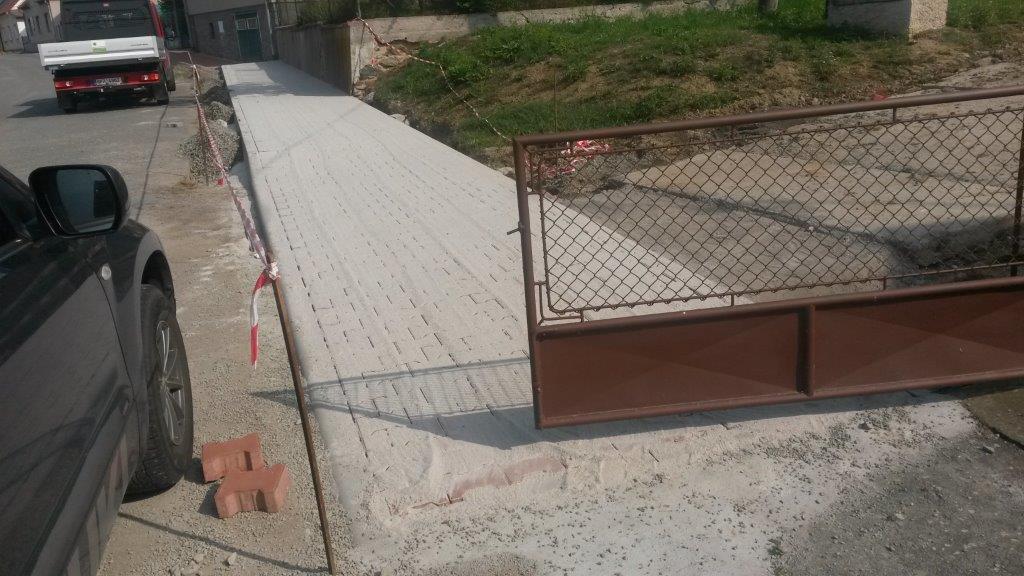 V současné době probíhá oprava chodníku v Jasmínové ulici, Kožlany.