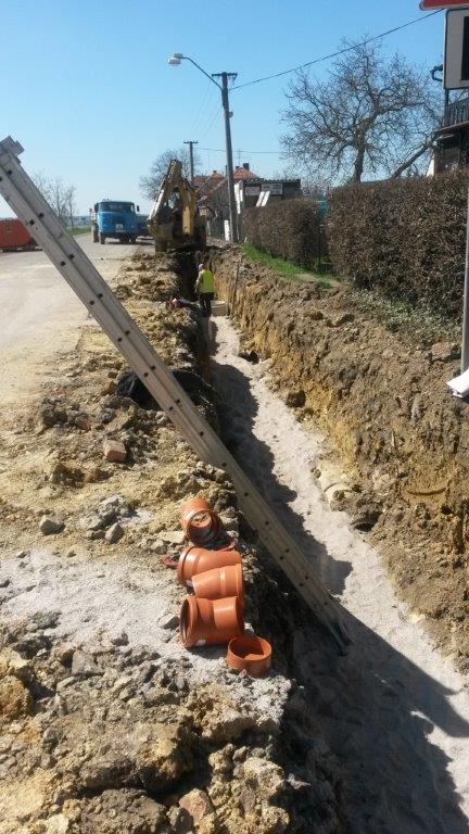 Oprava Kralovické ulice pokračuje položením vodovodního řadu (viz. fotografie).