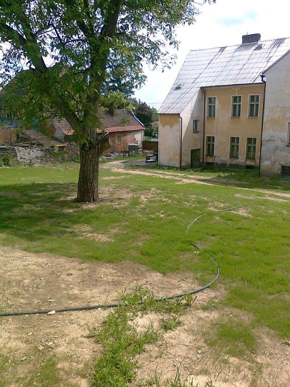 Úprava pozemku za budovou MěÚ a oprava stodoly pronajaté chovatelům.