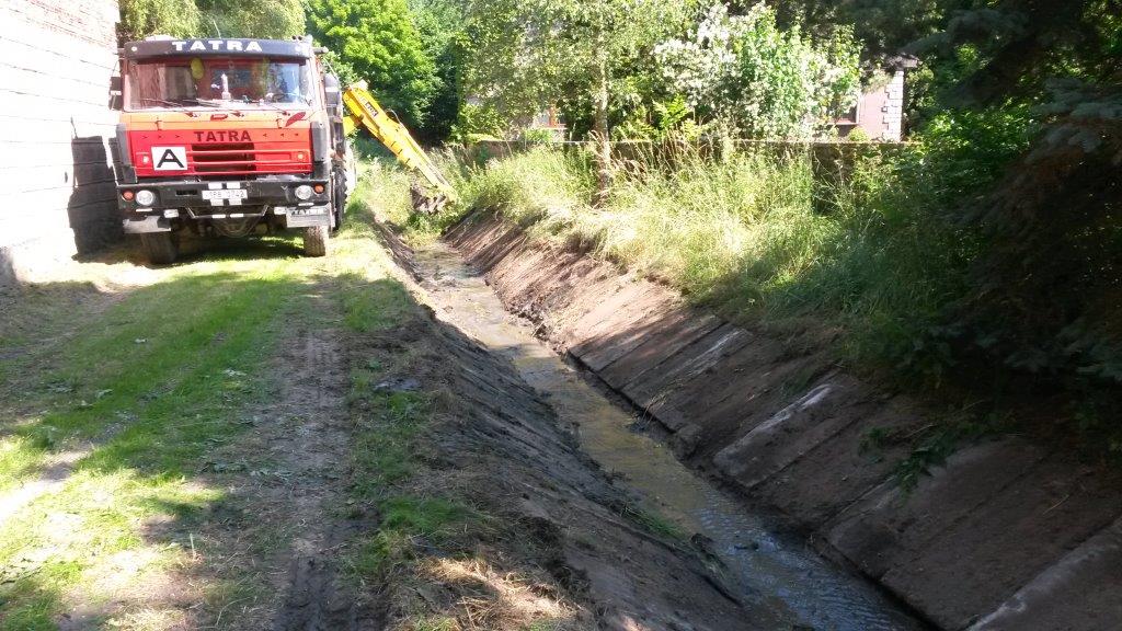 V současné době probíhá čištění koryta potoku v Hodyni. Práce provádí firma Touš, Vysoká Libyně.