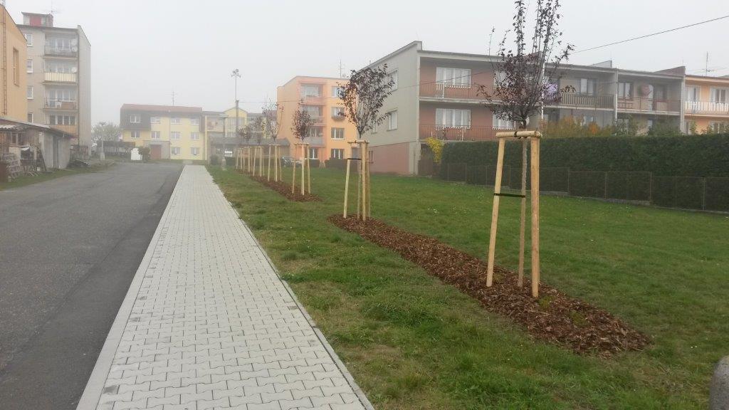Byla provedena nová výsadba dřevin v Jasmínové a v Pražské ulici, Kožlany.